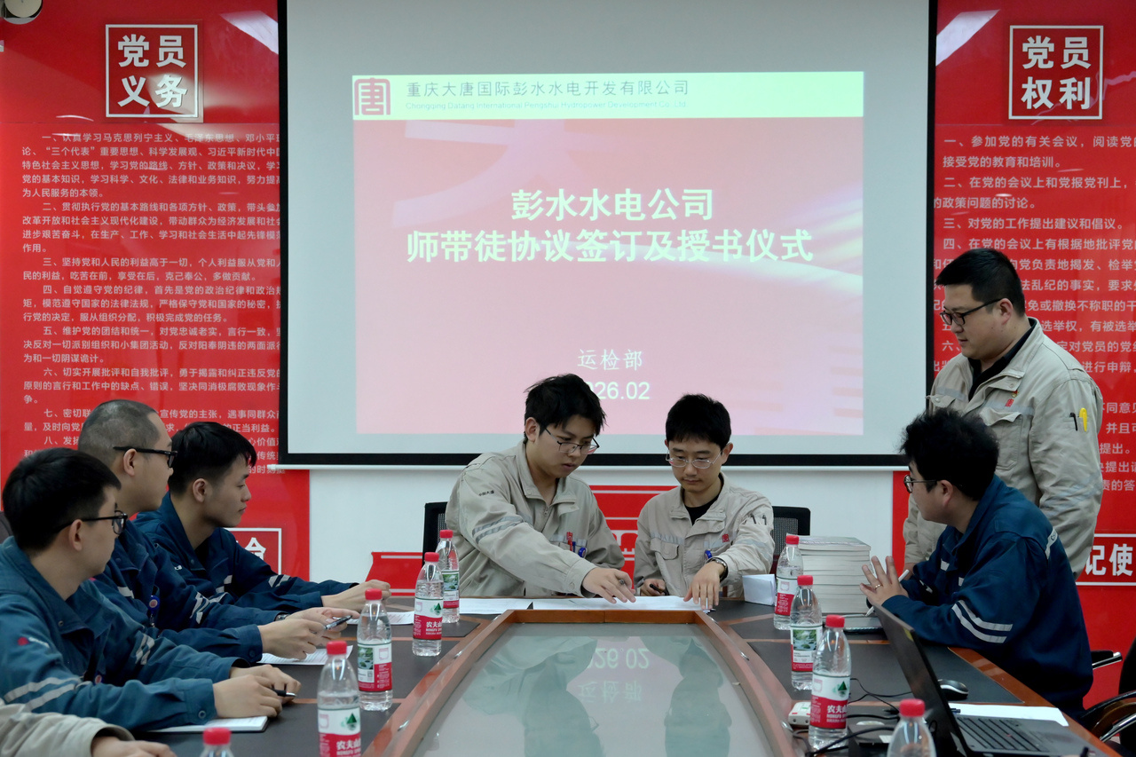 2月25日,彭水水电公司举行师带徒协议签订及授书仪式,以“传帮带”为纽带,搭建青年员工成长阶梯,充分发挥技术骨干示范引领作用,助力青年人才快速扎根岗位、锤炼本领,为公司高质量发展注入青春动能。